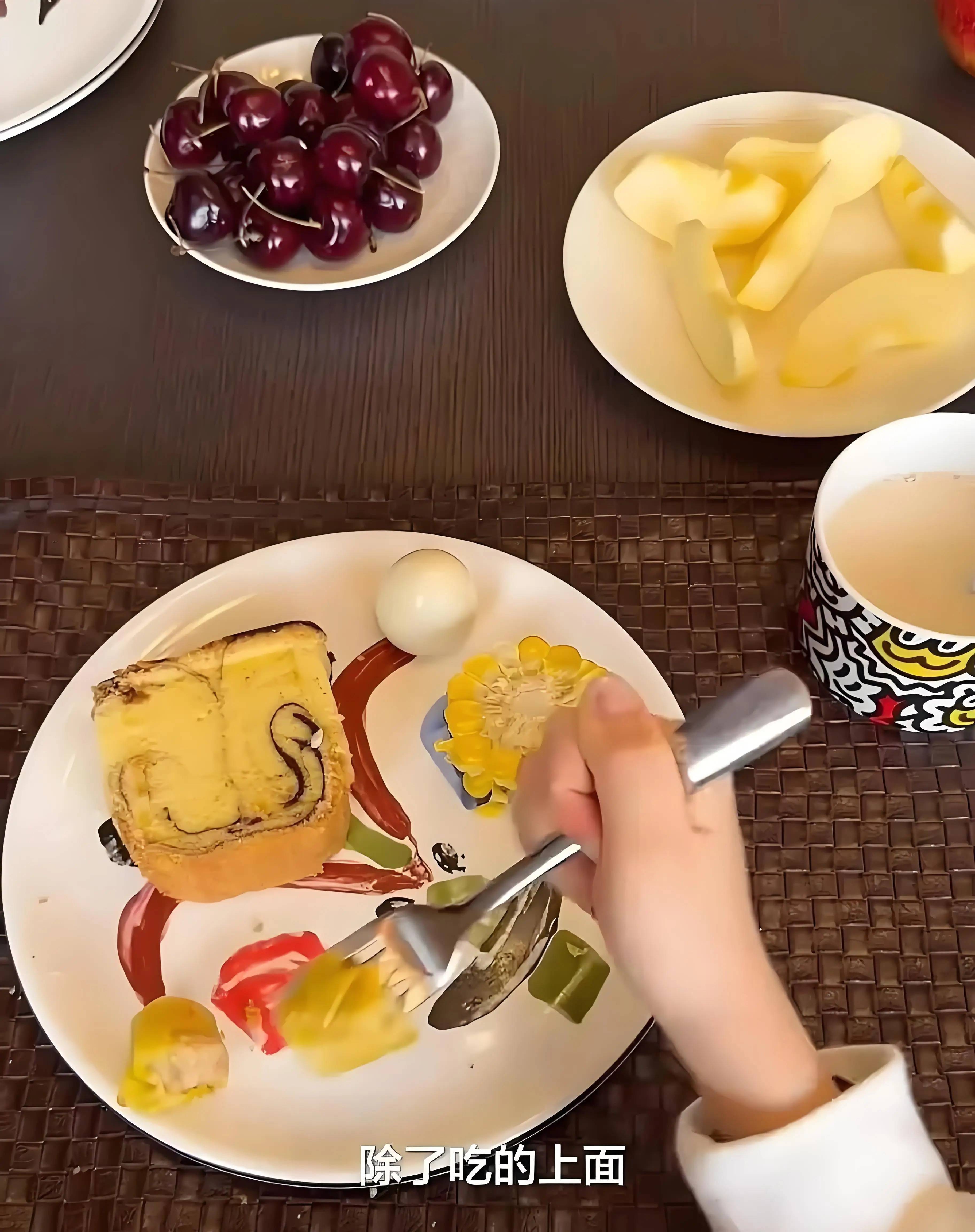 清晨阳光轻柔地洒进房间,方媛与孩子们一同开启新的一天。母女三人围坐在餐桌前,享受着宁静而美好的早餐时光。餐桌上,简单的食物却蕴含着满满的心意。盘子里,金黄的玉米散发着自然的香甜,嫩滑的鸡蛋营养丰富,松软的吐司带来温暖的饱腹感,再搭配上多种色彩缤纷的水果,清淡的口味中,营养却十分全面。看着一家人都保持着苗条的身材,不难从这健康的饮食习惯中找到答案。