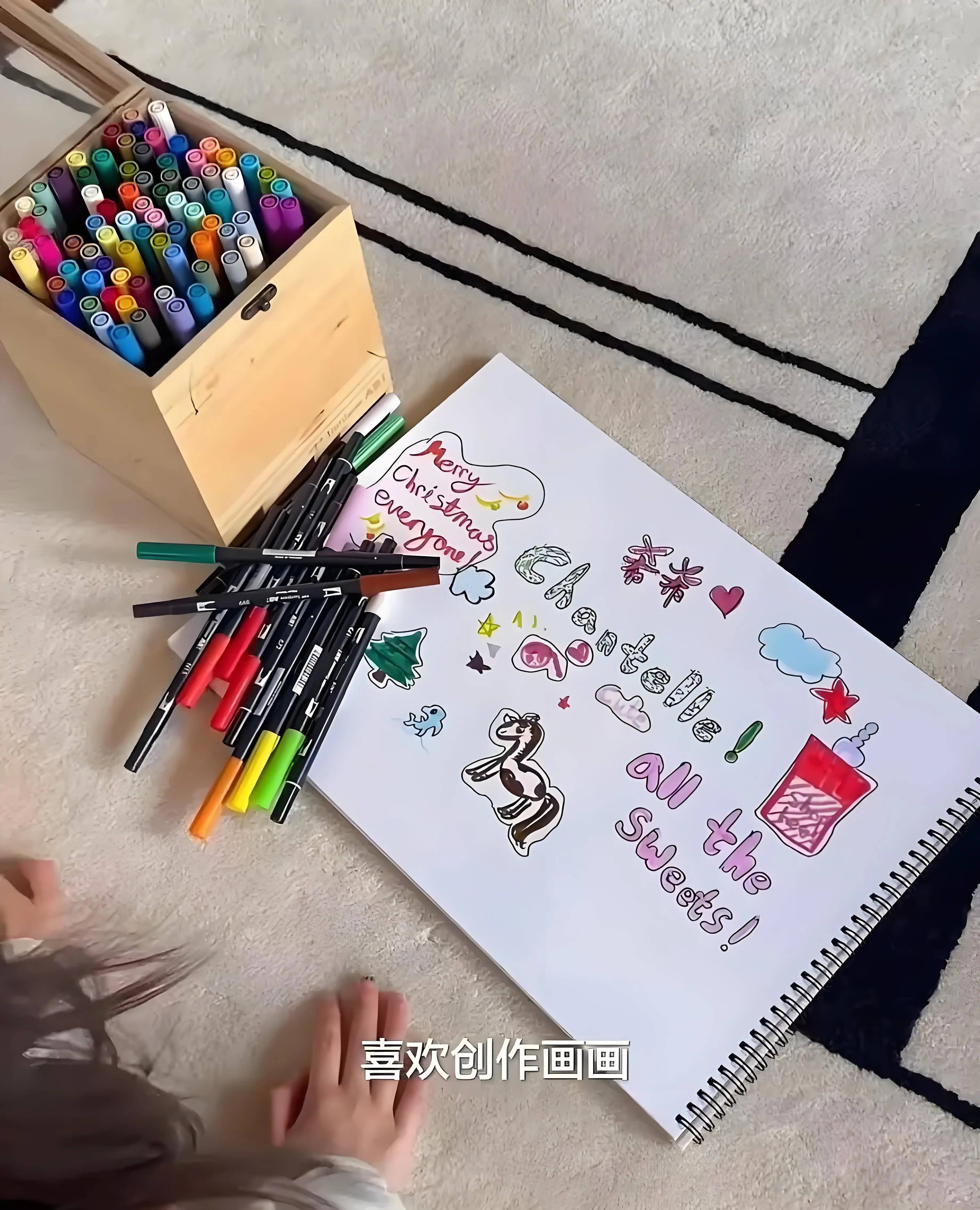 家里的木地板上铺着柔软的地毯,每一个细节都精致无比,为孩子提供了一个既干净又温暖的玩耍空间。方媛为希希准备了丰富的绘画工具,各种颜色的绘画笔和超大的画本,让女儿能够自由地挥洒创意。在希希的作品上,清晰地写着她的名字“希希”,这简单的名字,却透露出郭富城给孩子起名时的那份质朴与亲切。